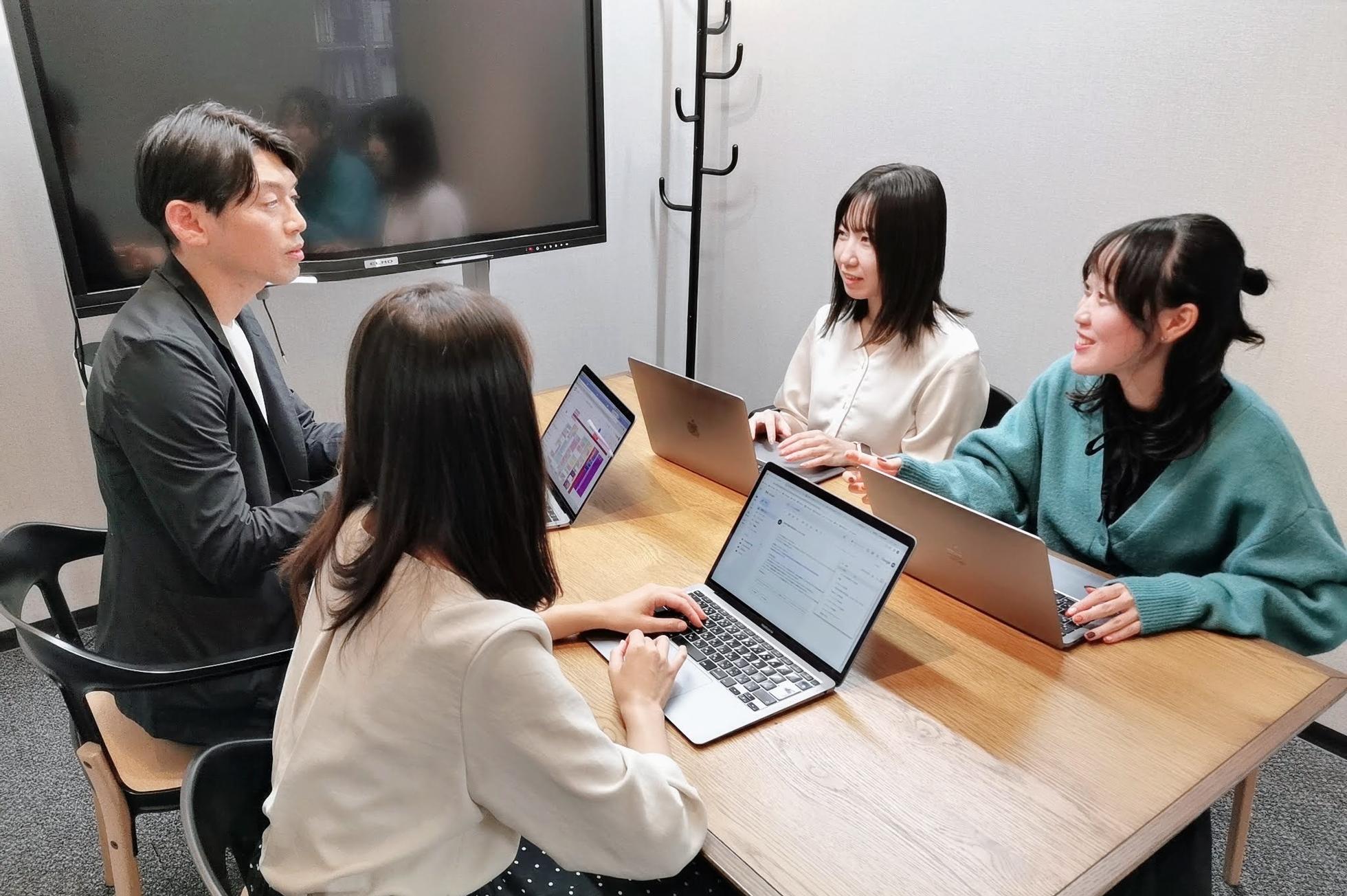 社内MTG風景 | 社内のデザイナーと協力してプロジェクトを進めていきます。平均年齢は30代と若く、和気あいあいとした雰囲気です。