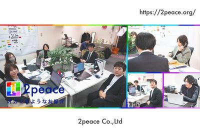 ■オカンのようにお節介で温かく■ 仕事は相手があって初めて成り立つもの。 自分に目を向けるのではなく、他人を思いやれる人間であり続けます。 ▍人財の力で企業の発展に役立ち、豊かで明るい社会づくりに貢献する。 私たちは「人間力」にフォーカスして、人財の皆さんにしっかりと指導、教育を行っています。 人財には2peaceで働くメンバーだけでなく、これから仲間になる方、2peaceから羽ばたいていく方すべてを含みます。スキル・技術の大切さも理解しつつ、何よりも人間性のある人財を輩出してまいります。 ■起業から今につながるストーリー■ 当社代表が社会人人生を歩み始めた当時、自分のために勉強していた学生時代とは大きく変わり、社会では相手の満足度がそのまま自分に跳ね返ってくる感覚を知ることになります。セールスでも自分が売りたいものを売るのではなく、まずは自分を知ってもらい、自分のファンになってもらうことの大切さに気付きました。しばらくして体調を崩し、働くことの大変さ、尊さ、難しさを実感します。 世の中には自分と同じような思いを抱く人がいるはず。 そうした人たちの力になりたい。 自分だからできることがある。 そうは言っても企業に人材を紹介するだけでは、私がやる意味がないだろう。 ならば――。と社会貢献できる事業を結び付けて現在の2peaceを立ち上げます。 ■解決したい問題■ いじめ・不登校など学校にまつわる問題について行政や企業のアプローチが行われていますが、認知件数・生徒数はそれぞれ増加しています。これらの問題には学生時代の過ごし方が深く関わっていると私たちは考えました。実際の活動として当社事業の一環で学校を回って研修を実施し、不登校の状態にいた生徒が通学・登校できるようになったケースもあります。 この取り組みを就職活動につなげれば、学生本人が社会に出て誰かの役に立てるようになります。地方で行えば地域に活力が生まれ、いずれ過疎化が解消されていくはずです。 2peaceは組織体制を整えつつ事業会社を立ち上げ、雇用を賄える環境をつくり、ゆくゆくは地方での人材育成を開始。リモートでも働ける環境をつくっていく所存です。