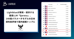 「Qarasu」は2023年12月29日にローンチした国産LLMです。 日本最大級のLLM日本語能力ランキングにおいて、国内組織トップの評価を得ました。