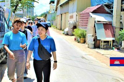 創業するきっかけになった、カンボジアで障がい者雇用事業展開するサミスさんと。