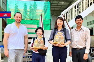 創業するきっかけになった、カンボジアで障がい者雇用事業展開するサミスさんと。