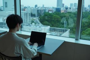 新宿御苑の緑を見ながらお仕事♪奥にはスカイツリーも見えます!