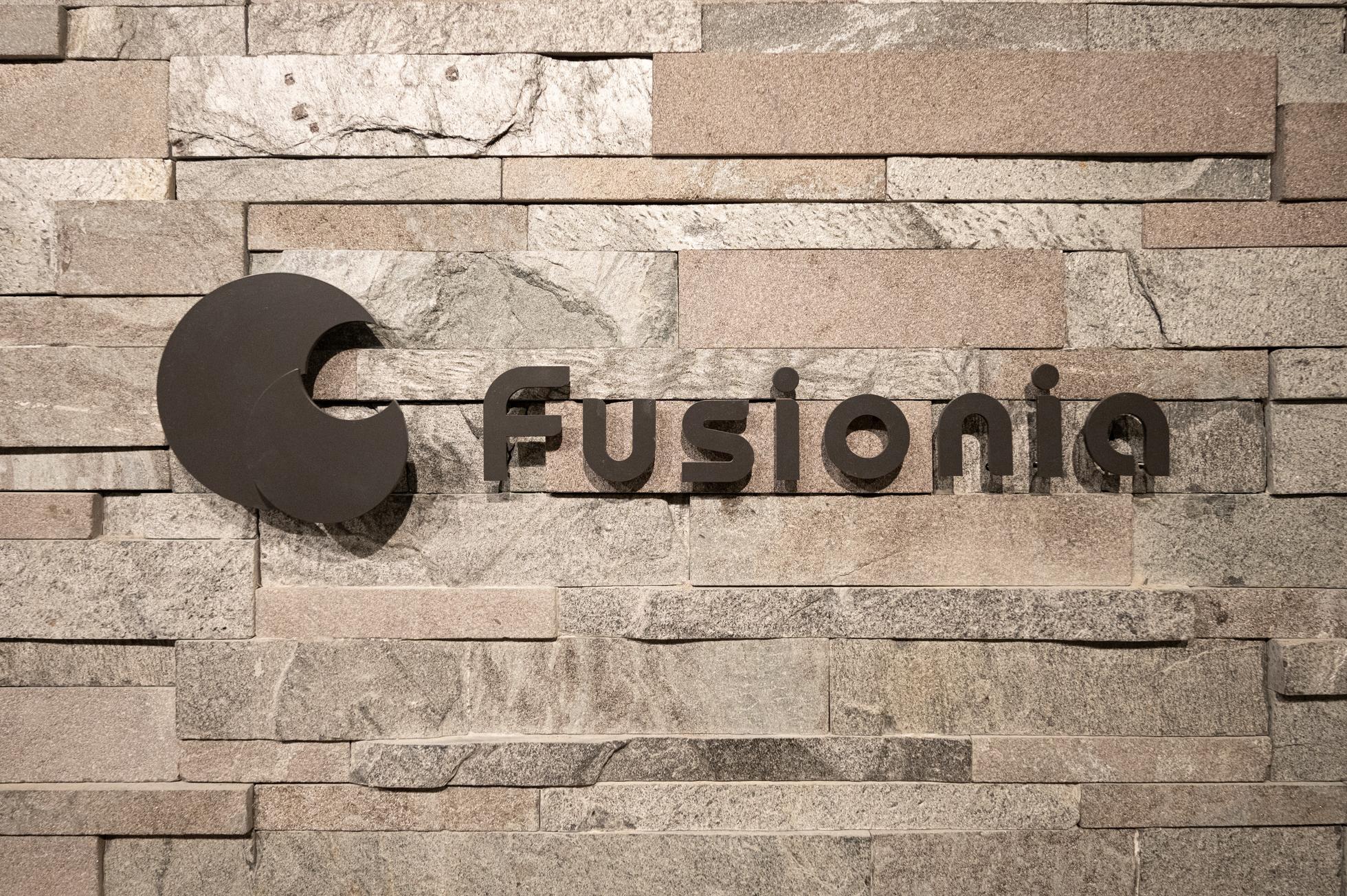 社名は、「フュージョン(融合)」と「パイオニア(開拓者)」を掛け合わせた造語に由来。ロゴは「創業当時から続けている3つの事業」を表現している。