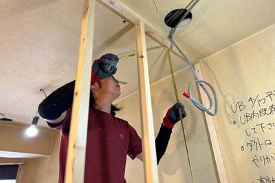 IT系の営業から3年前にエイムズへ入社 現在大工として解体、木工事、器具付け工事を一貫して行っています。 また、電気工事士の免許も取得し大工工事と併せて電気工事も行っています。 最近ではエアコン工事にも挑戦中です。