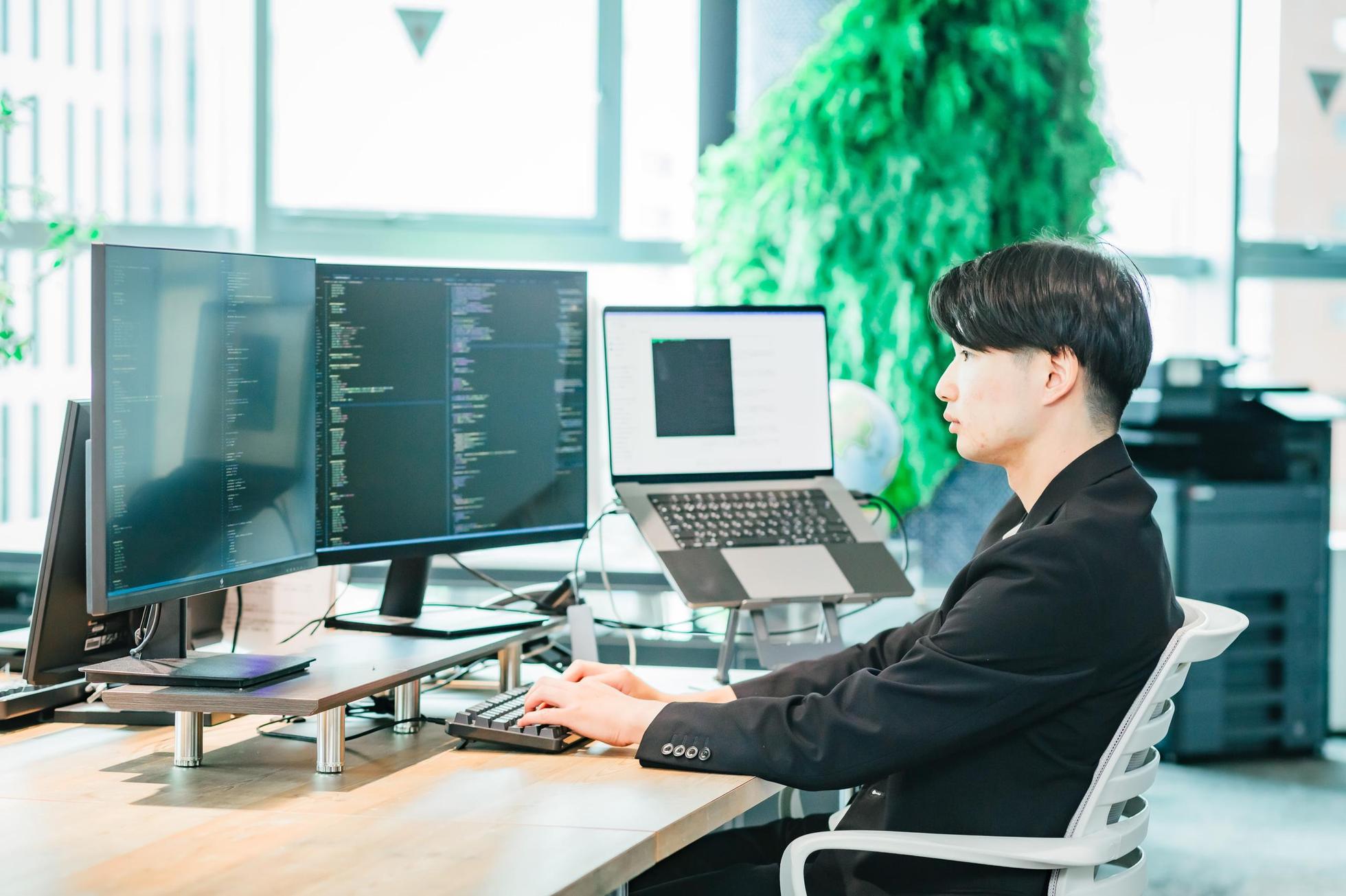 小学生の頃に初めてプログラミングに触れて、それ以来プログラミングをおもしろく感じるように なりました。そして、プログラミングの勉強を続けているなかで、もっと自身のプログラミングの技術を 幅広いところで活かしたいと考えるようになり、今の会社でシステムエンジニアとして働くようになりました! 今では、以前よりも楽しくプログラミングをできています!!