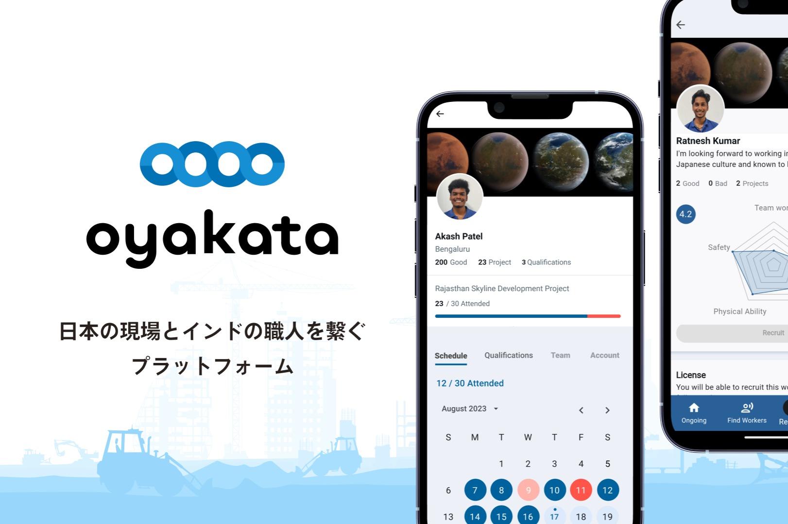 ▼主要事業『oyakata』について  ̄ ̄ ̄ ̄ ̄ ̄ ̄ ̄ 「すべてのがんばる人に、幸せを」というミッションのもと、日本・インド両国が抱える課題を解決するために、"日本の技術力"と"インドの若い人材"を繋ぐプラットフォーム『oyakata(オヤカタ)』を運営しています。 ▼日本とインドの課題と、その解決へ  ̄ ̄ ̄ ̄ ̄ ̄ ̄ ̄ 働く人が足りない日本と、職の数が足りないインド。 インド国内で日系建設工事会社を経営する当社は、インドの若者が日本のノウハウを学べる訓練校を運営。現場の実態に即した専門的な教育を通じて、日本の職場での成長が期待できる、基礎力と意欲を備えた人材を安定的に育成しています。 ▼「紹介」ではなく「人づくり」という選択を。  ̄ ̄ ̄ ̄ ̄ ̄ ̄ ̄ 『oyakata』は、単なる人材紹介ではなく、“人づくり”。 訓練校では日本の建設業・製造業のノウハウを教育するだけでなく、挨拶・掃除・報連相や、「時間を守る」「約束を守る」など、日本の現場で求められる行動規範も学びます。 そして、入国前の育成から来日後の職場定着までを一気通貫でサポートすることで、人材・企業双方にとって安心・安全な受け入れ体制を実現しています。 ▼『oyakata』が選ばれる理由  ̄ ̄ ̄ ̄ ̄ ̄ ̄ ̄ ・国家戦略特区にも認定された一気通貫モデル ・世界No.1の合格率と100名超の入学実績 ・建設、製造に特化した実践的育成プログラム ▼国からの評価  ̄ ̄ ̄ ̄ ̄ ̄ ̄ ̄ ・経済産業省「日本式ものづくり学校」認定 ・内閣総理大臣「国家戦略特区事業」認定 ▼サービス  ̄ ̄ ̄ ̄ ̄ ̄ ̄ ̄ oyakata:https://oyakata.blue/
