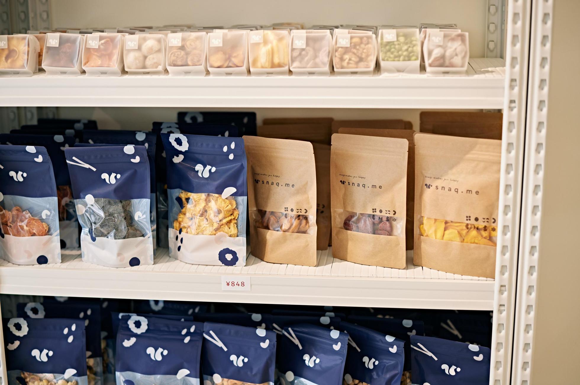おやつは、クッキーやフィナンシェなどの焼き菓子、チョコレート、和菓子などの甘いお菓子、チップスや米菓のしょっぱいもの、ドライフルーツやナッツまで幅広いラインナップを取り揃えています。