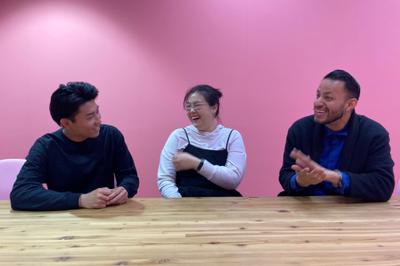 月一のAll staff meetingでの写真。なにやらじゃんけんで食べ物をどう分けるか決めている模様‥