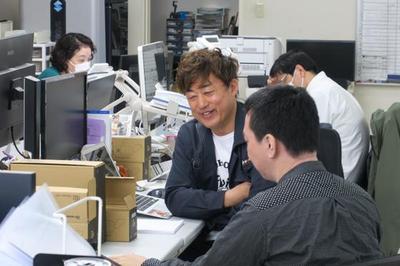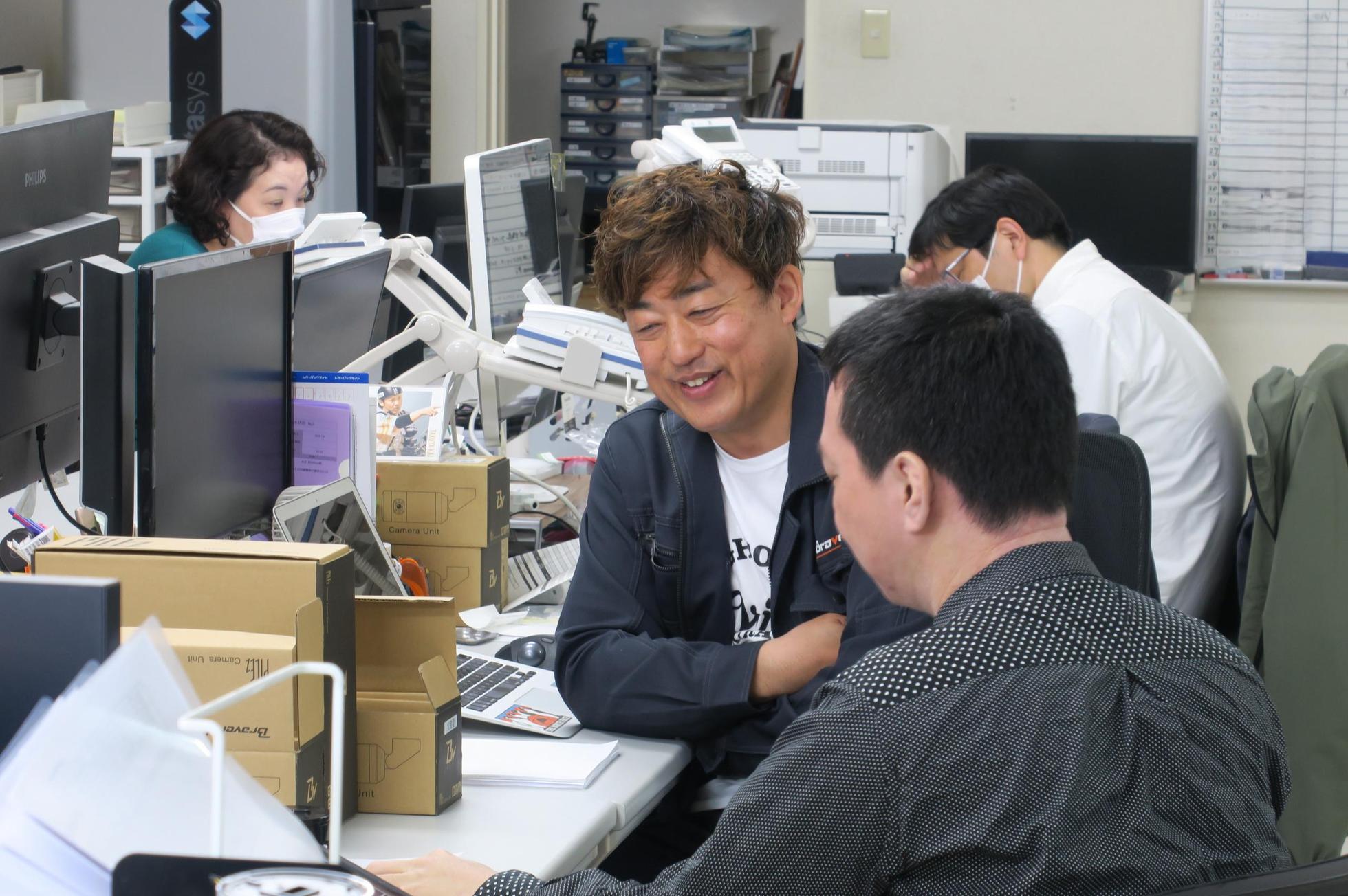 営業、総務、電気・機構・ソフトウェアエンジニアがワンフロアで働いており、部門間の垣根を超えたスムーズなコミュニケーションが可能です。チームワークを大切にしながら、高品質な製品を提供できる環境が整っています。