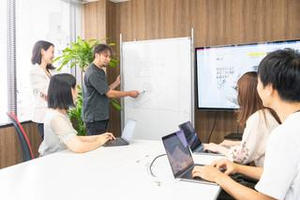 目標達成に向けて定期的にミーティングを行い、戦略を共有します。