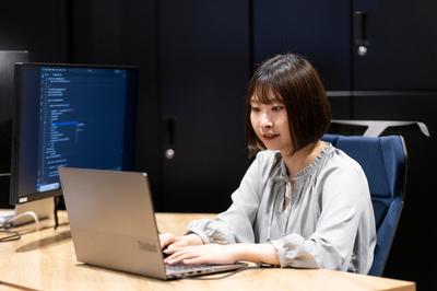 受託ルーム。デュアルモニター、広々としたデスク、落ち着いた空間で、エンジニアのみなさんが集中しやすい環境を整えてお待ちしております!