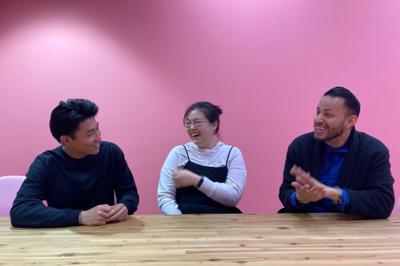 月一のAll staff meetingでの写真。なにやらじゃんけんで食べ物をどう分けるか決めている模様‥