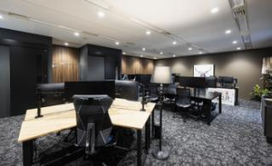 受託ルーム。デュアルモニター、広々としたデスク、落ち着いた空間で、エンジニアのみなさんが集中しやすい環境を整えてお待ちしております!