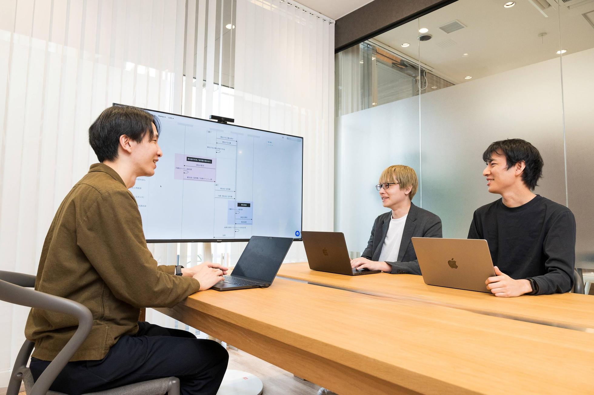 ◆事業の特徴 ▼公的個人認証サービスにおける「プラットフォーム事業者」の主務大臣認定を取得 当社は2023年3月にプラットフォーム事業者としての主務大臣認定を取得しました。 国内民間事業者としては16 社目の主務大臣認定を受けたプラットフォーム事業者となります。 プラットフォーム事業者の認定にはシステムのセキュリティ等で一定の要求基準を満たす必要があり、高いセキュリティ水準を有しています。 ▼本人確認におけるインフラからサービスの開発・提供までの全レイヤーを単一組織で開発 本人確認におけるインフラやプラットフォームに加え、サービスの開発・提供までの全プロダクトレイヤーを単一組織で開発しています。 当社は一気通貫で全レイヤーを保有したマイナンバーカード特化型の組織のため、他社よりも迅速にサービス開発や事業展開を行うことが可能です。 ▼マイナンバーカードの展望 デジタル庁が犯収法等に基づく本人確認をマイナンバーカードの公的個人認証に一本化する方針を打ち出しており、法令遵守義務の観点から事業者側からの需要はより強くなるものと想定されます。 また、現在マイナンバーカードの申請率は80%弱であり既に運転免許証よりも交付率が高い社会インフラとなっておりますが、健康保険証・運転免許証・在留カード等との一体化が進み、より申請・交付率が高まっていくことを想定しています。 当社の取り組む「公的個人認証サービス(JPKI)」を用いた本人確認およびデジタル身分証の市場規模は民間・自治体向け市場合計で数千億円程度に成長し、将来的にもニーズは高まっていく見通しです。 私たちはマイナンバーカードの公的個人認証による本人確認のパイオニアとして、新しいサービスの開発・提供に努めて参ります。 ▼少数精鋭の高密度なエンジニアリング集団 ISUCON優勝、SECCON準優勝の経験を持つCTO澤田をはじめ、少数精鋭で非常に高い技術力を持つメンバーが揃っています。 開発スピードも早く、これまで創業からの約1年間で、セキュリティ要件の高い法令対応の大臣認定取得、PoC、インフラ技術確立などを実施してきており、顧客やユーザーの要望に柔軟に応えつつ通常のエンジニアリング企業の数倍の速度でプロダクト開発ができることが当社の強みです。 ◆現在の組織/メンバーについて 理系出身のメンバーが多いため、数値やロジックに基づいた考え方を好む傾向があります。 一方、ビジネスは理だけでは割り切れないことも多いことは十分に皆理解していることから、そこだけを追い求めることはいたしません。 社内の雰囲気は皆に発言が求められ、どんな意見も受け入れられる心理的安全性の高い環境です。 皆が日本全体の社会課題におけるDXを担っている自負から、まとまりがあるのも特徴の一つです。 また、意思決定のスピードがとにかく早く、開発力も非常に高く速いため、プロダクトが通常のエンジニアリング企業の数倍の速度で生まれています。 平均年齢は25〜26歳と比較的若い精鋭が集うチームです。 現状は男性の比率が高いものの、多種多様な数多くの人々に利用されるアプリを作っていくうえで女性の意見を取り入れる必要性を踏まえ、今後是正していきたいと考えています。 まだ創業してから間もないためメンバー数は少ないものの、資金調達後は正社員20-30名程度の増員を計画しています。 仕事や価値観のマッチングを重視しているため、まずは業務委託として参画後に、正社員としてのご入社も歓迎しております。 ◆働く環境 ▼リモート勤務状況やオフィス環境について ハイブリットワーク、フルフレックスでの勤務が可能なため、高いパフォーマンスを出せる環境・時間帯で業務に携われます。 ▼勤務時間や残業時間について 勤務時間はコアタイム無しのフルフレックスとしております。 ※セールス等、業務上顧客等に係る機会が頻繁に発生する場合は、お客様先の都合次第となります 残業時間はプロジェクトの繁忙および職種によるところが大きいものの、当社は各々がプロフェッショナルとして自身の裁量でパフォーマンスを最大化するための自由と責任を持つという価値観があります。 そのため、例えば昼の13時〜夜の22時まで働き午前中いっぱいは寝ている、調子が出ない平日には休みを取って土日に働く、などの真のフレックスを実現しています。