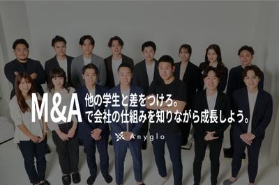 【こんな人、求めています!】 ・社会人に向けて、学生時代に圧倒的な成長をしたい方 ・社会で活躍できる最強の営業力を身につけたい方 ・新しい経験にも前向きで真摯に向き合える方 ・本気で取り組み、人として、ビジネスパーソンとして圧倒的に成長したい方 ・成長のために、粘り強くトライ&エラーを繰り返せる方 【業務内容】 売り手・買い手へのアプローチをメインに、M&Aアドバイザーとしての土台づくりに必要な経験を一気通貫で携わっていただきます。 ・売り手・買い手のアプローチ ・財務分析・企業評価のサポート ※応募者の経験やスキル、稼働可能時間によって業務の幅が広がります。 【このインターンで習得できること】 ・最前線で活躍できるM&Aアドバイザーとしての土台 ・どんな環境でも活躍できる最強の営業力 ・社会人に不可欠なビジネス基礎スキル/PC基礎スキル ・顧客企業の業界への知見 【このポジションの魅力】 ・急成長中のベンチャー企業の最前線でM&Aアドバイザーとしての基礎を学ぶことができます。 ・自社での買収経験のあるM&A仲介であるため、売り手や買い手のリアルを体験することができます。 ・業界特化でなく、大規模から小規模までM&A仲介経験があるため、様々な業界に対する知見やM&Aスキームでの実行を体験することができます。 【働き方・制度】 ・フルフレックス制度(9:00-19:00の間で自由にシフトを提出できます。)  *テスト期間などは柔軟に対応可能 ・メンター制度 【募集要項】 ・募集対象:大学生 ・稼働場所:当社オフィス(一体感を持って働くことを重視しているので、原則出社になります。) ・稼働時間:平日週10時間以上(曜日・時間は自由にシフト組可能) *09:00-19:00の間で勤務可能 *テスト期間などは柔軟に勤務時間を調整可能 *その他、依頼するタスク量や〆切も兼ねて要相談 【選考フロー】 1次面接→最終面接 *WEB面接も可能です。 ------------------------------ Anygloは「THE STORY MAKERS」をビジョンに掲げ、人にしか創れない"story"を大切にしています。 創業2期目ながら従業員20名、平均年齢26歳という若さで、次世代の経済圏を創ることを目指して多角的に事業展開し、現在、マーケティング事業・メディア事業・M&A仲介事業を行う企業です。 メンバーの共通の価値観として、「誇りを持て」「夢中であれ」「最速で最高へ」「常識を疑え、想像しろ」「人に灯し、人で灯す」の5つのバリューを掲げて行動し、共通の目標に向かってフラットな関係性で突き進んでいます。 創業2期目で他社事業の買収を行うなど驚異的なスピードで成長していますが、それは我々の目指すビジョンに対しての1歩目にすぎません。 どんな大企業も最初はベンチャーから始まります。 Anygloは日々最速でPDCAを回す中で得られる自身の成長という充実感だけでなく、最高の仲間と協力し、切磋琢磨して成功を目指す、そのプロセス自体も楽しめる刺激的な環境です。 チャレンジングな環境で自分を圧倒的に成長させ、これからのAnygloを一緒に創っていきませんか?