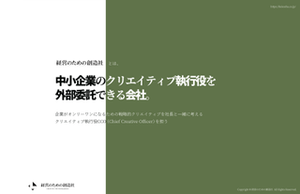 ◆経営のための創造社とは、中小企業を支えるための戦略的クリエイティブを最適な形で提供する会社です。 一、企業の抱える課題を大小問わず伺います。 一、経営課題を掘り下げ、最適なアウトプットを定義します。 一、ベストなクリエイティブチームを編成します。 一、事業サイズに最適な価格、期間で実行します。 一、実施後の結果を見極め、継続的なご提案をします。 ◆適切なクリエイティブとは、共感を産む戦略的クリエイティブ。 ニーズだけだと差がつかない。シーズだけだと売れない。イノベーションは直近の課題からは遠い。中小企業にとっては、オンリーワンになるための戦略的クリエイティブが必要です。 ◆経営のための創造社は、戦略的クリエイティブを執行する会社です。 企業がオンリーワンになるための戦略的クリエイティブを経営者やリーダーと一緒に考えるクリエイティブ執行役を担います。