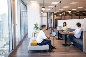 関西支社オフィスには自由に使えるカフェスペースやハイカウンターがあります。もちろん仕事をしてもいいですし、25階からの眺めを見ながら休憩するのもOKです!