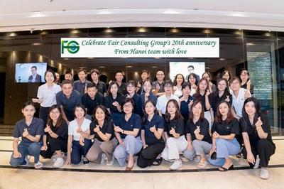 フェアコンサルティンググループは、2024年に創業20周年を迎えました。写真は20周年記念式典でのメンバー集合写真です。国内メンバ―、海外駐在員メンバー、そして現地ローカルスタッフも数名が参加いたしました。