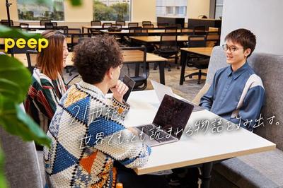 「21世紀、世界でもっとも読まれる物語を生み出す。」 マンガ・ノベルアプリ『peep』を運営する当社では、掲載作品である原作シナリオ(チャットノベル)の開発から、マンガ(モノクロデジタルコミック)等さまざまなデジタルコンテンツの編集・制作を行っております。peepだけではなく、さまざまな電子書籍アプリ・サービスでも配信しており、日々たくさんの読者・ファンの方々に応援いただいております。 私たちは、生み出した作品が多くの人に読まれることがこの上ない喜びであり、作品を通して人とつながることこそがクリエイターの欲求の根源だと考えます。生み出した作品をより多くの人に届けるため、私たちはグローバルでNo.1を目指します。世界を舞台にエンターテイメントの世界に挑戦することは、高い水準のマインドを必要としますが、私たちは本気で世界中の人々を楽しませたい、そして世界一の作品を生み出せると信じています。