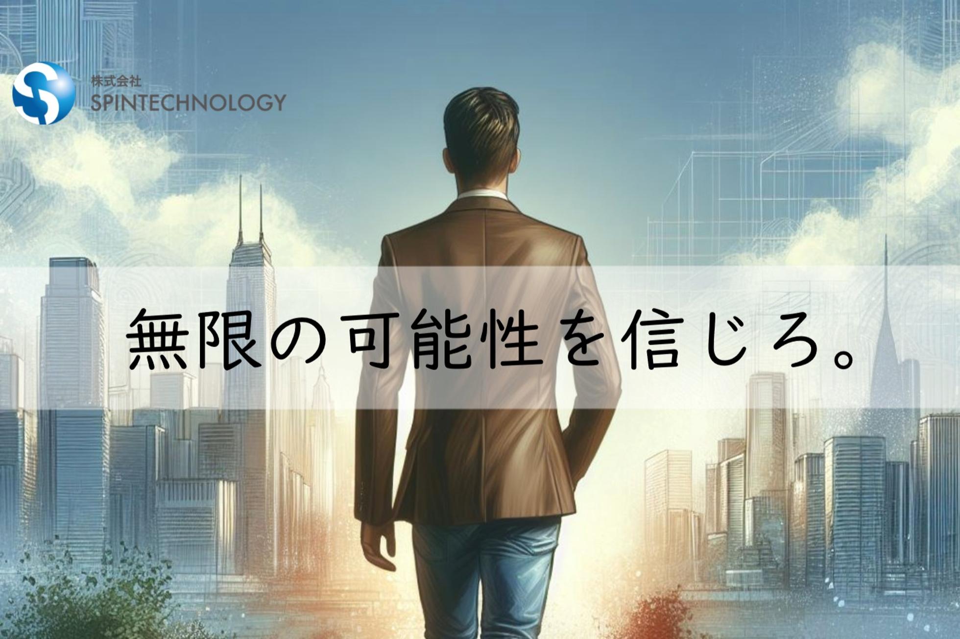 当社は創業間もないベンチャー企業です。 日本一のITベンチャーを目指す上で、問題も発生してくるかと思いますが、 経営理念として「志しむことからすべてがはじまる」と言う経営理念を掲げてます。 志しむと造語を使っていますが、簡潔に言うと志(人生の目的や動機=自己実現したい事)を成し遂げる事を楽しむという事です。 会社の仲間には、必ず幸せになってもらいたい。それが私の嘘偽りのない想いです。 会社と言うのは、1人1人が自己実現を実現する舞台であり、1人1人が主役で1人1人輝く場所です。 今現在、様々な想いを抱えてる人も多いと思います。 今までの人生順風満帆な人、かたや今まで上手くいかず挫折した人、これからが不安な人等、 どんな過去や現在があっても 自分を変えたい!どうにかしたい! と言う想いがあれば、スピンテクノロジーは最後の最後まで仲間の志を成し遂げるまであきらめない! 一緒に協力し時に、時には一緒に悩み、一緒に志しんで行く! そんな仲間と一緒に会社を作っていきたいと思います。