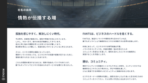 オンラインコミュニティを運営するプラットフォーム「FANTS」の運営をしています。FANTSのサービス内容はシステムの提供に留まらず、プロデュースも実施することで、オンラインコミュニティを成功に導きます。