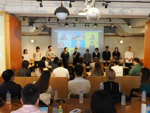 年に一度、期初に全社員が一同に会しキックオフミーティングを開催します。部署ごとの一年間の決意表明やチームビルディングゲームを行います。