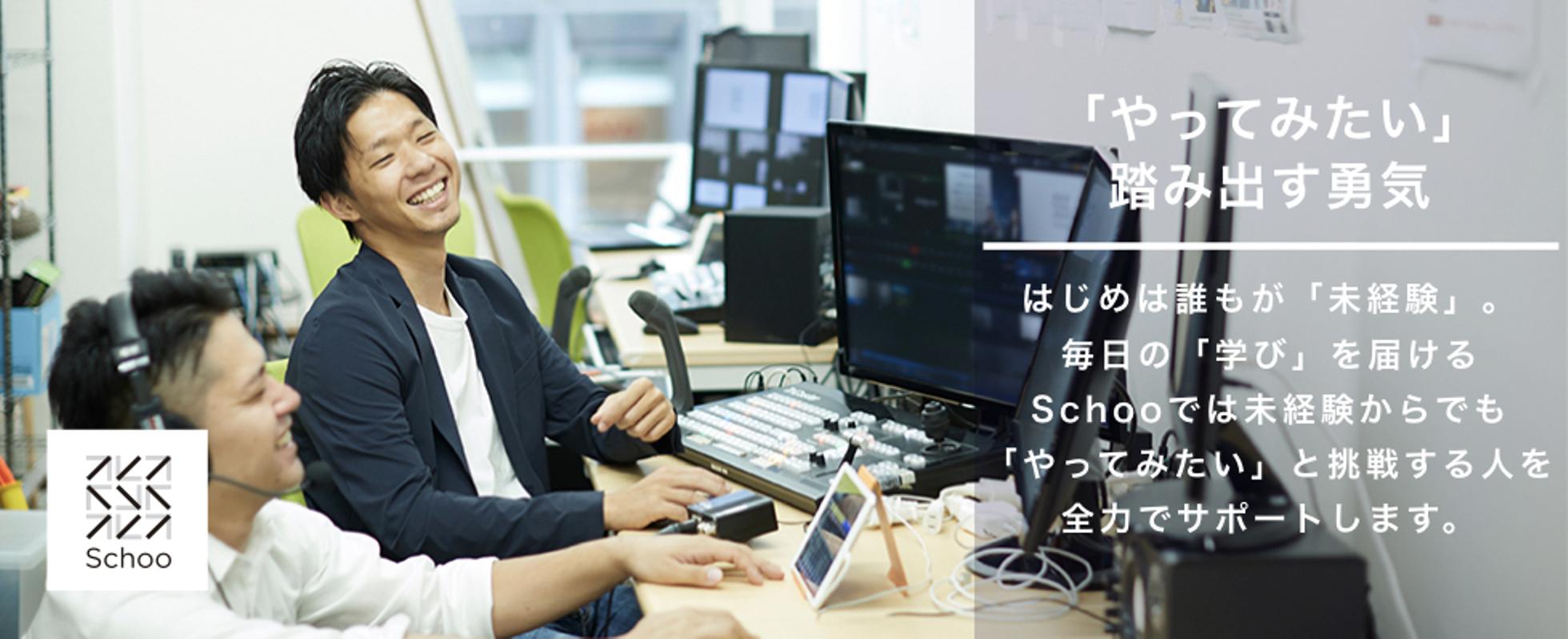 【未経験からでも毎日のライブ配信を体験してスタジオ責任者に】 ■Schooスタジオ責任者候補の仕事 毎日生放送されるSchooの番組が制作されるスタジオのオペレーションを行います。 ■具体的な仕事内容 ・ライブ配信ディレクション 毎日夕方頃から夜11時頃まで、自社スタジオでライブ配信をしています。 番組の担当ディレクターと制作メンバー、アナウンサーたちと一緒にゲストを迎え、打ち合わせからリハーサル、そして本番までをディレクションしていただきます。 毎日変わるゲストは企業の経営者の方からグラビアアイドル、お笑い芸人までと幅広く、沢山の方とお仕事をします。 ・制作オペレーションの運用と改善 ライブ配信における番組制作オペレーションを日々進化させてください。 ライブ配信の業界では常に新しいものが求められ、進歩のスピードがとても早いです。どうすれば今よりももっと良いものができるのかを考えながら制作メンバーを牽引し世界が驚くようなライブ配信をしてください。 ・インターン生の管理  10〜20代の大学生を中心とする男女約10名程度の制作メンバーたちと一緒に放送を作り上げていただきます。カメラマンや音声スタッフなどを束ね、ライブ配信に大切なチームワークをより発揮できるようにメンバーたちのマネジメントをお願いします。 配信に必要なテクニカルスキルの部分は身につけていただく必要はありますが、大切なのはメンバーとの信頼関係を築くことです。 ■勤務日時 ・日数:週4勤務以上 ・時間:14:00-22:00  (1日のスケジュール例) 14:00~ 出社/スタジオの機材確認、掃除など 15:00~ シフト管理/その他デスクワーク 16:00~ MTGなど 17:00~ 番組ディレクターと打ち合わせ 18:00~ 1本目の番組の打ち合わせ/リハーサル 19:00~ 本番ディレクション業務 20:00~ 2本目の番組の打ち合わせ/リハーサル 21:00~ 本番ディレクション業務 22:00~ 配信、片付け完了後、退社 ■チームの雰囲気 アナウンサーと制作メンバーはとても仲が良く、仕事が終わった後に食事やカラオケに行くこともしばしば。また休日には、みんなでデッサン教室や手作りプリン教室など登壇したゲストのイベントに参加して、学習サービスの企業らしく新しい学びを吸収しています。 ■チームについて ドワンゴやリクルート出身者、大学卒業後映像を自主制作をしてきたメンバーなど様々なバックグラウンドを持ったメンバーが集まっています。 ■あると望ましいスキル・経験 ・オンライン配信用の動画編集の経験 ・ライブストリーミングによる動画配信の経験 ・台本制作や構成を考えて収録した事がある経験 ・チームでのものごとに取り組んだ経験 ※映像制作に限りません。イベントの主催や舞台などチームものごとに取り組んだご経験ある方 ■こんな方にオススメ ・何か自分の武器となるスキルが欲しい方 ・休日には自主制作や社外の活動も行いたいという方 ・ものづくりが好きな方 ・映像に関わる仕事をしたい方 ※Schooでの仕事をしながら、自主制作で映画を作り公開しているメンバーもおりプライベートの時間をしっかりと持つことができます。 ・参考:Schooでディレクターをしながら映画音楽を作っている話 (https://www.wantedly.com/companies/Schoo/post_articles/107326) ■勤務地 東京都渋谷区道玄坂 Schoo本社および放送スタジオ ※放送スタジオは本社オフィスの隣のビルに併設されています