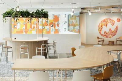 社員の憩いの場、リフレッシュルーム。写真では伝わりにくいですが100名規模のイベントができるゆったりとしたスペースで社員が休憩したり談笑しています。