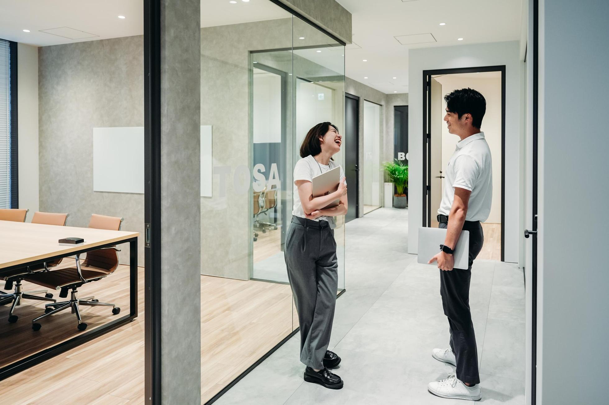 新オフィス”Mita S-Garden”のエントランス。このリモート時代にあえてオフィスを作り込み。多種多様な価値観があつまりディスカッションを通じて世に最大の価値を提供しております。