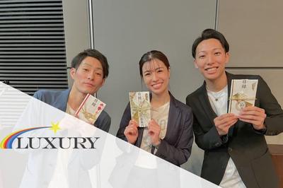 仲間と挑戦し、輝き続ける場所――LUXURY ★ チーム制で働くから、仲間と一緒に成長できる! LUXURYでは、3〜5人のメンバーでチームを組み、全国の現場を回っています。 仕事が終わったあとは、皆で飲み会を開いたり、宿で人生相談が始まることも。 辛い時や大変な時でも、いつも支えてくれる仲間がいるからこそ、前を向いて挑戦し続けられる。 休日には、観光地で遊んだり、食べ歩きを楽しんだりと、オンもオフも一緒に過ごす仲間がいる――。 そんな距離の近さが、LUXURYならではの魅力です。 そして、ここには“一人ひとりの挑戦と輝きによって、組織全体が活性化する好循環”があります。 目標となる仲間の姿に刺激を受け、自ら挑戦し、成長した自分がまた次の後輩たちを導く。 この挑戦と輝きの連鎖こそが、創業時から変わらないLUXURYの強さ。 だからこそ、仕事でもプライベートでも、賞賛に満ちた毎日を仲間と過ごすことができるのです。 ★ 前職も個性もバラバラ!でも、誰でも輝けるチャンスがある 全社の平均年齢は28歳、現場スタッフは25歳と、若手が中心となって活躍しています。 前職は、居酒屋スタッフ、AD、カラオケ店員、美容師、スノボ選手、さらには芸能人まで本当にさまざま! 未経験からでもしっかり稼げて、半年でサブマネージャー昇格も夢ではありません。 年齢・性別・学歴・職歴に一切関係なく、誰にでも平等にチャンスがあります。 本気で取り組んだ分だけ、クリアでシンプルな評価制度でしっかりと成果が返ってくる―― LUXURYは、そんな環境を用意しています。 さらに、LUXURYのキャリアアップは役職を手にするだけでは終わりません。 自分の能力や個性を最大限に発揮し、自らチームを動かし、新たな仕事を生み出していく。 その過程で、会社の事業展開や経営にも影響を与える人材へと成長していくことができるのです。 「決められた道」ではなく、「自ら道を切り拓く」――その醍醐味を、ぜひ味わってください。 ★ ステイオフ制度&社内イベントで仲間と深まる絆 LUXURYでは、出張当日の過ごし方もあなた次第! 現地到着後は、自由に観光するのもOK! 仲間とご当地グルメを楽しんだり、観光地を巡ったり、思い出をたくさん作れます。 また、月1回の本社会議の後には、レストランやクラブを貸し切ってのパーティも開催。 飲み会や観光、社内サークルなど、仕事だけじゃない“つながり”が、LUXURYのチーム力を支えています。 ここにあるのは、「最強のライバル」であり、「最高の仲間」。 営業成績ランキングには個人戦もチーム戦もあり、 自分自身を磨きながらチームで一丸となって頂点を目指す。 成果が出た時は、みんなが自分のことのように喜び、苦しい時は全員で助け合う。 そんな信頼と絆が、LUXURYの文化として根付いています。 ★ 「先輩に教えてもらった以上のことを、後輩に教える」がモットー LUXURYでは、新人スタッフの教育を全員でサポート! 挨拶の仕方、効率的な集客、興味を引く接客のコツまで、先輩たちが一から丁寧に教えます。 全員が未経験からのスタートだからこそ、「助け合う」文化がしっかり根付いています。 入社後3日間は、会社や事業内容、給与体系、取り扱う商品までを丁寧に説明する入社研修を実施。 さらに、振り返り研修、リーダー研修など、成長に応じた教育を定期的に行い、 「誰かに教えられた以上のことを後輩に返す」という良い循環を生み出しています。 ★ 「伝わる言葉」を大切に、共に未来を創る 人はそれぞれ生きてきた背景も違えば、響く言葉も違います。 だからこそLUXURYでは、「伝える言葉」より「伝わる言葉」を大切にしています。 相手の考えや感じ方までイメージし、本気で向き合う日々。 そうやって築いた信頼が、チームの強さとなり、次の挑戦につながっています。 一人ひとりが挑戦者であり、仲間であり、未来の創り手 LUXURYは、あなたの挑戦を全力で支えます。 そして、あなたの輝きが仲間に受け継がれ、また新たな成長を生み出していく―― そんな好循環の中心で、一緒に最高の未来を描いていきましょう。