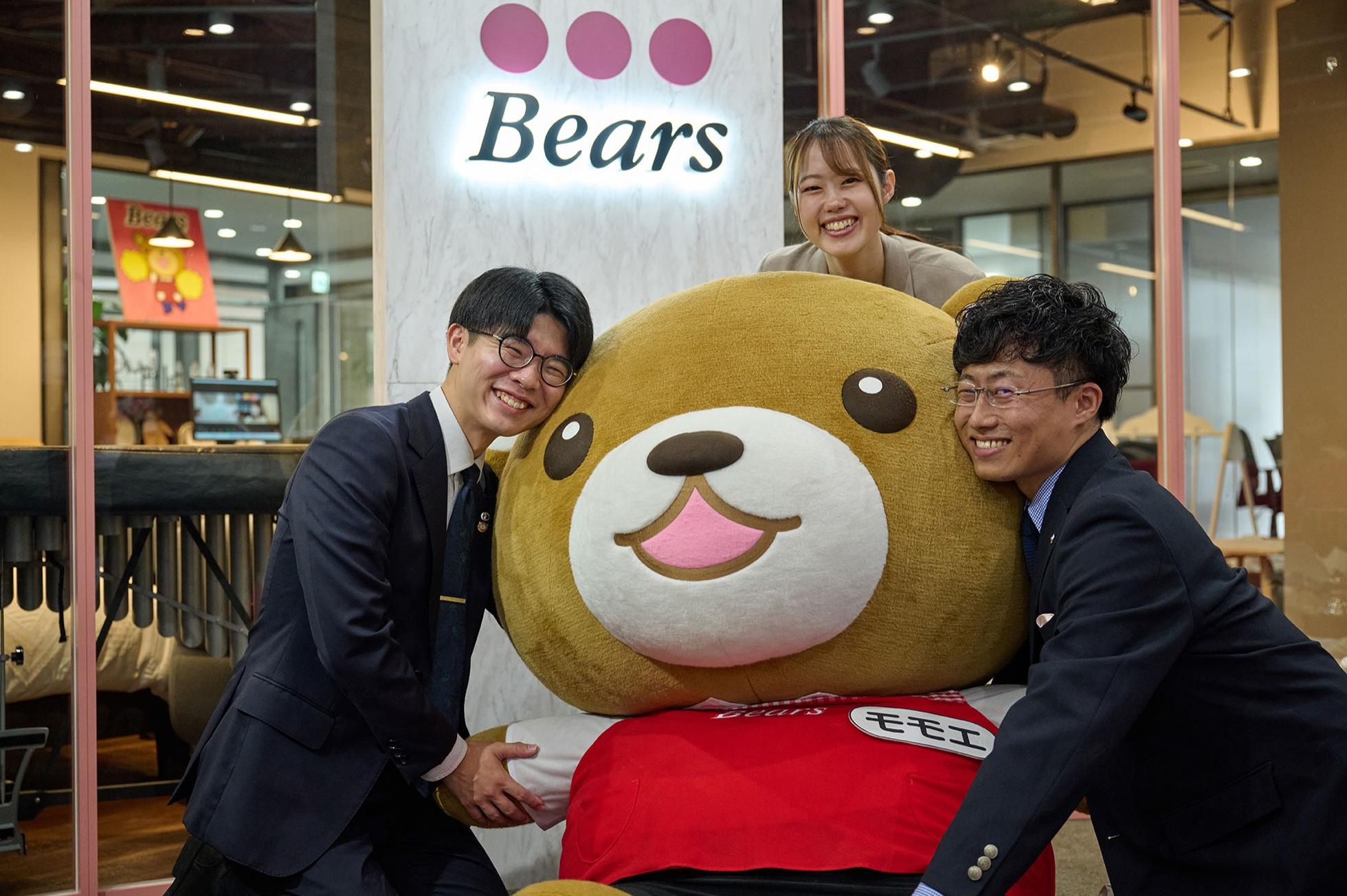ベアーズ社員の平均年齢は34.2歳。20代~30代の若手が多く活躍しています。社員同士の距離は近く、笑顔を交えたコミュニケーションが多く飛び交う雰囲気です。産休・育休取得率も100%を継続中!会社全体でお互いを支え合う社風が特徴です。