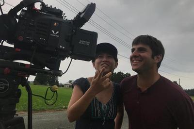 撮影現場にて、山崎エマ監督と撮影クルーの仲間たち