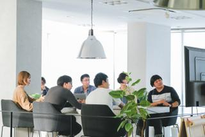 【フロンティアビジョンスタジオ】勉強会の様子 in 一階中央テーブル