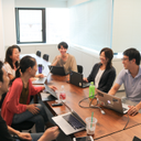 打ち合わせ風景。年次や立場は関係なくオープンに意見を出し合えるカルチャーです。