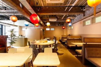2022年2月に移転した新オフィス。占い要素が詰まったこだわりの空間になっています。1Fはカフェのような作りになっており、研修や懇親会などの集まりでも使用します。
