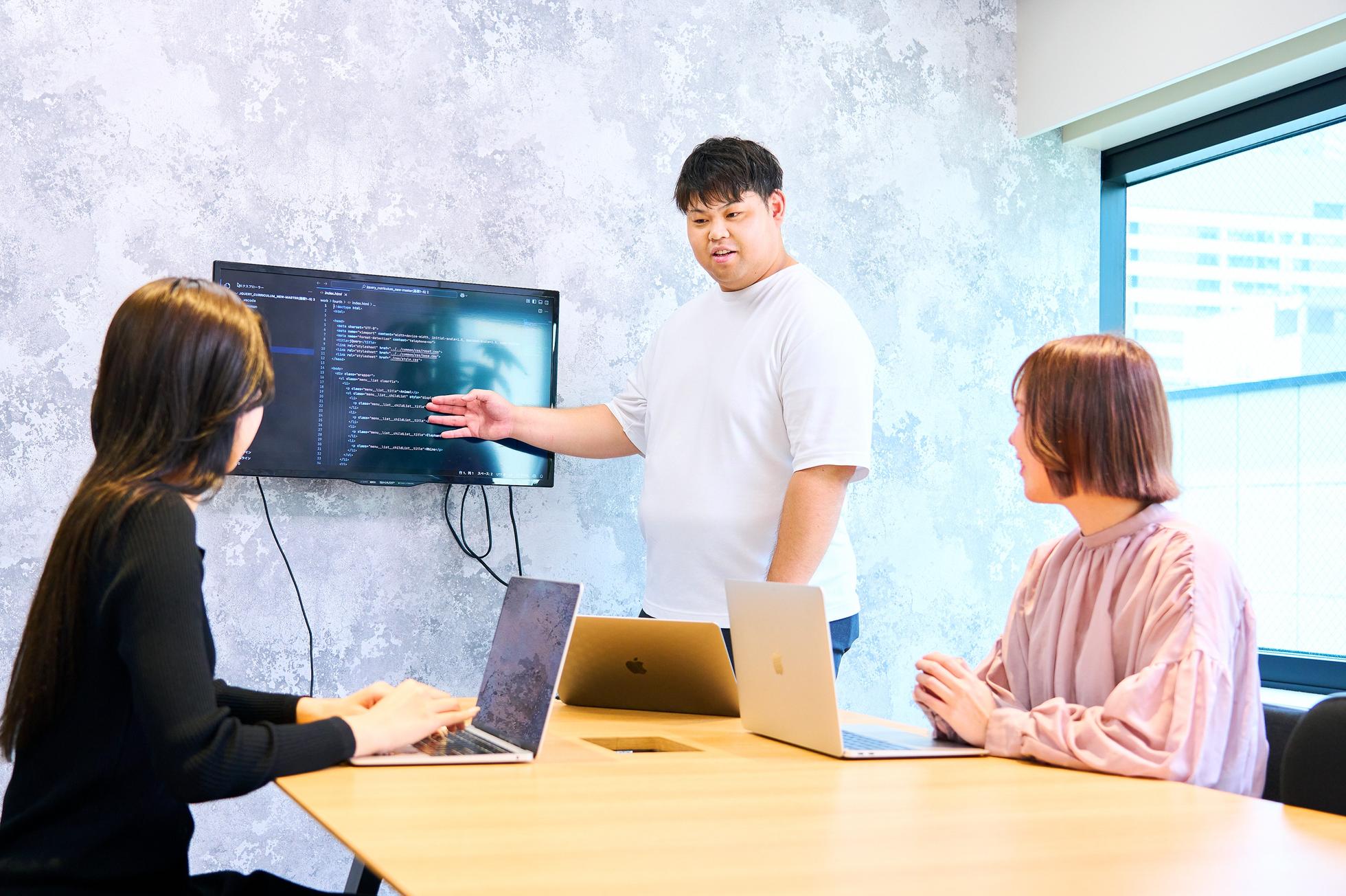 当ポジションは、Webエンジニア職の募集です。 内定後はプログラミング研修を受講し、エンジニアとして必要な知識やスキルを習得していただきます。入社後は各プロジェクト先で開発業務に携わり経験を積んでいただきます。 ゆくゆくは社内の開発事業やトップエンジニアチームでご活躍いただけるような、積極性や高い向上心をお持ちの方にご入社いただけたらと考えております。 ▍プログラミング研修内容 Gizumoのプログラミング研修は、フロントエンドとバックエンドのコース選択制です。 フロントエンドはJavaScript(React.js)、バックエンドはPHP(Laravel)のスキルを身に着けていただきます。現役エンジニアのメンターが専任でメンタリングを担当しており、実践的なスキルを習得して実務同様の環境で開発トレーニングを行います。 ◎フロントエンド研修 ・コーディングレッスン(HTML/CSS) 、レスポンシブWebサイト制作 ・JavaScript(ES)レッスン ・React.js入門 ・React.jsによるSPA開発 ◎バックエンド研修 ・PHP基礎 環境構築 ・PHP簡易アプリケーション開発、MySQL入門 ・Laravel入門・アプリケーション開発 ・仮想開発環境構築(Docker) ・研修用プロジェクト仕様確認・バグFix ◎実践研修 ・チーム開発入門(Git・タスク管理ツール) ・研修用プロジェクト新規機能追加・ユニットテスト ・エキストラ課題:AWS(EC2, S3等), Node.js ・プロジェクトオンボーディング期間 ▍研修体制 フロントエンド、バックエンドそれぞれ専門のメンターが教えます。 個人学習とコードレビューを高速で繰り返すため、大人数での講義であるような質問のしづらさや一人ひとりへのメンタリングが行き届かないということはありません。 フェーズ毎に個別フィードバックを受け、エンジニアとしてプロジェクトに参加できるスキルが身につくまでメンタリングします。 ▍キャリアの一例 ・エキスパートとして技術を追求するWebエンジニア ・フルスタックエンジニア ・プロジェクトマネージャー(PM) ・プロダクトマネージャー(PdM) ・自社開発エンジニア ・起業・独立 ・後輩エンジニアを育てるメンター … ▍必須要件 ・26卒の方 ▍こんな方歓迎します! ・現在独学中で、さらに開発スキルを高めたい方 ・技術だけでなくビジネス的な面でもスキルアップしたい方 ・双方向のコミュニケーションを重視して働きたい方 ・仕事を通して顧客や社会に貢献したい方 ・ベンチャー企業で会社の成長に関わりたい方 ・実力主義の環境においてスピード感を持って成長したい方 ▶新卒向け記事まとめ https://www.wantedly.com/stories/s/Gizumo_recruit ▶24卒エンジニアメンバー紹介 https://www.wantedly.com/companies/gizumo-inc/post_articles/905479 ▶『ピッチコンテスト2024』では22卒のエンジニアが優勝し、事業化の権利を獲得しました! https://www.wantedly.com/companies/gizumo-inc/post_articles/910173 ▶20卒メンバーが中心となって開発したサービスが社内リリースされました! https://www.wantedly.com/companies/gizumo-inc/post_articles/425399 いきなり面接ではなく、まずは会社についての理解を深めていただくための企業説明を行います。 みなさまのエントリーお待ちしております!