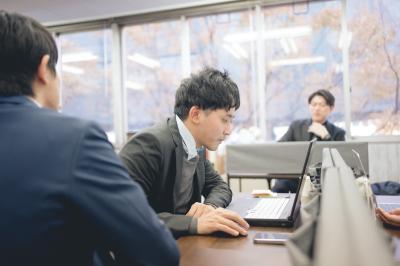 チームでMTG。成長を目指し、お互いにアイデアを出し合っています。