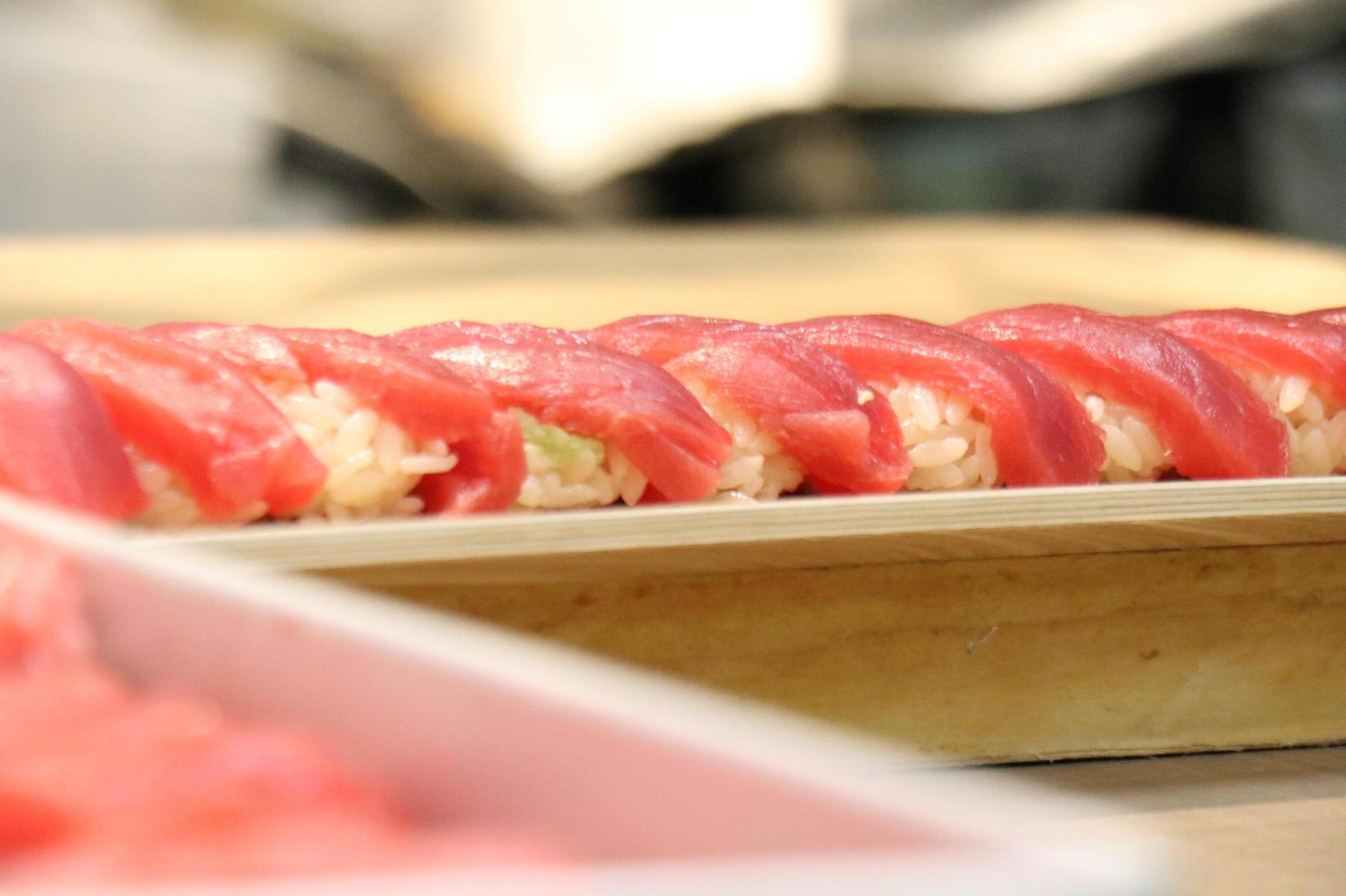 「入社してマグロが食べたい」と考えている方に朗報♪本格的なお寿司が食べられます。GOOYA食堂の日は、本職の板前さんが調理してくださるお料理がたくさん振る舞われます。豪華な食卓をみんなで囲みましょう!