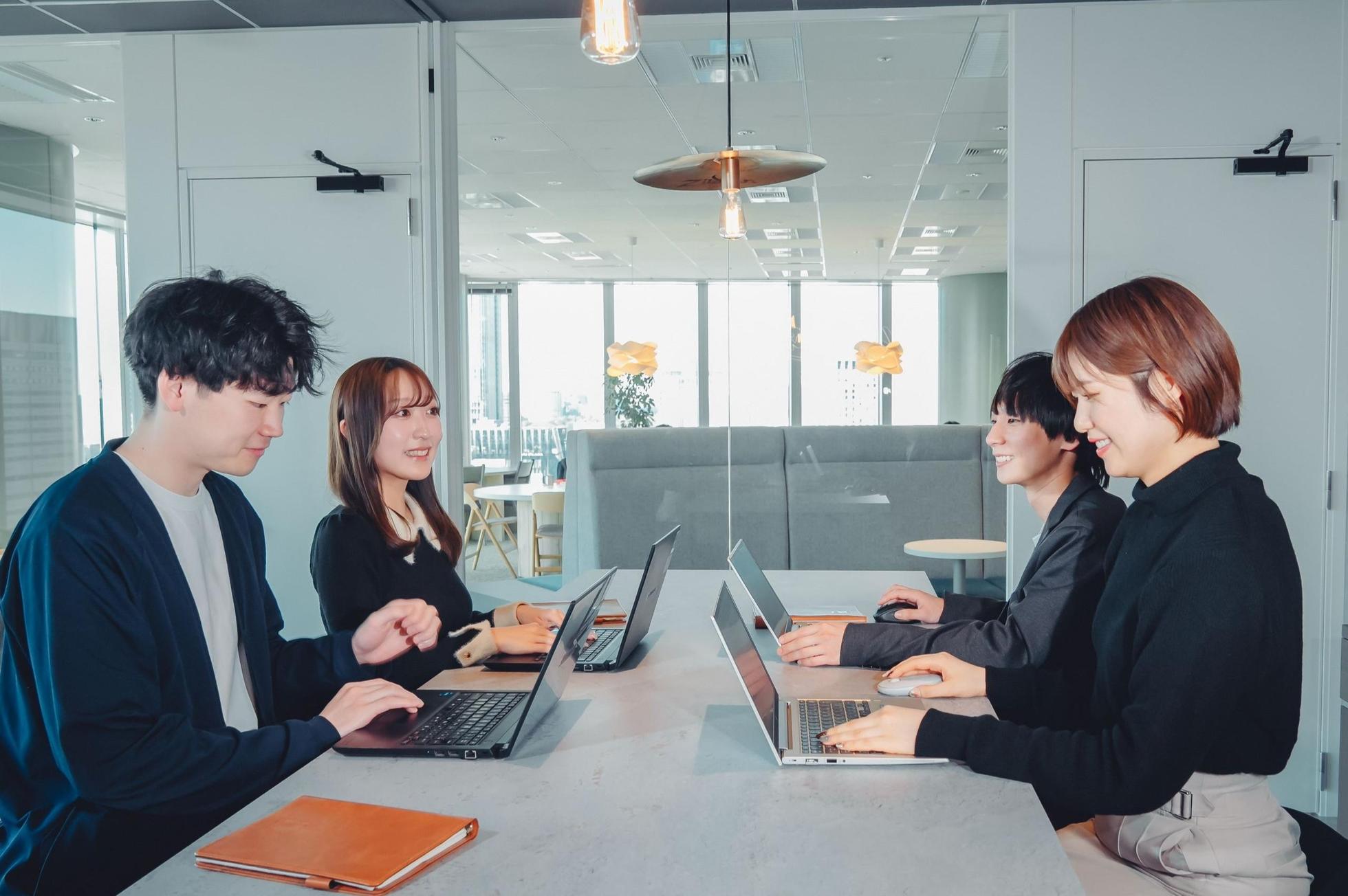 東京本社オフィスには社員約70名が在籍。開放的なリフレッシュスペースや集中ルーム、交流の場「KitatatsuBar」など充実の設備を備えています。