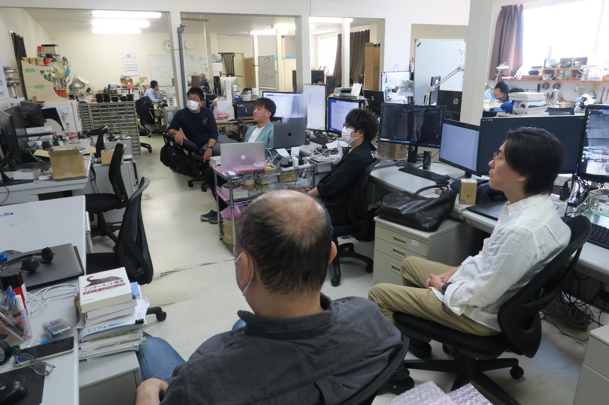 営業、総務、電気・機構・ソフトウェアエンジニアがワンフロアで働いており、部門間の垣根を超えたスムーズなコミュニケーションが可能です。チームワークを大切にしながら、高品質な製品を提供できる環境が整っています。