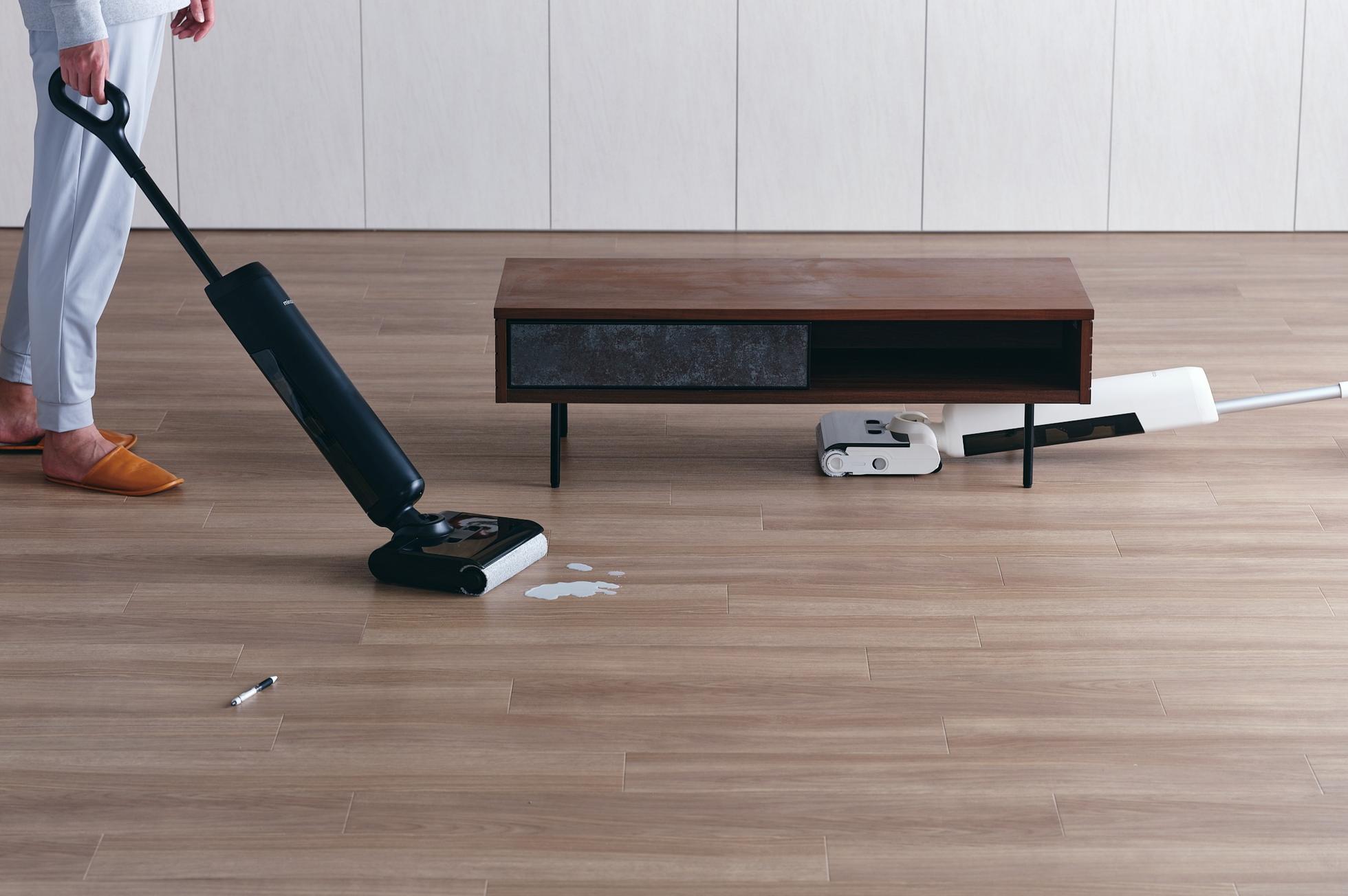 「液体汚れ・髪の毛・ベタつきが一度に掃除できない」「雑巾がけが体力的にしんどい」といった日々の悩みを、これ1台で解消。