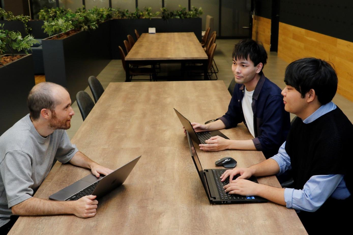 Web/ECサイトチームメンバーの3人。様々なサイトを運用しているので日々の情報共有を大事にしています。