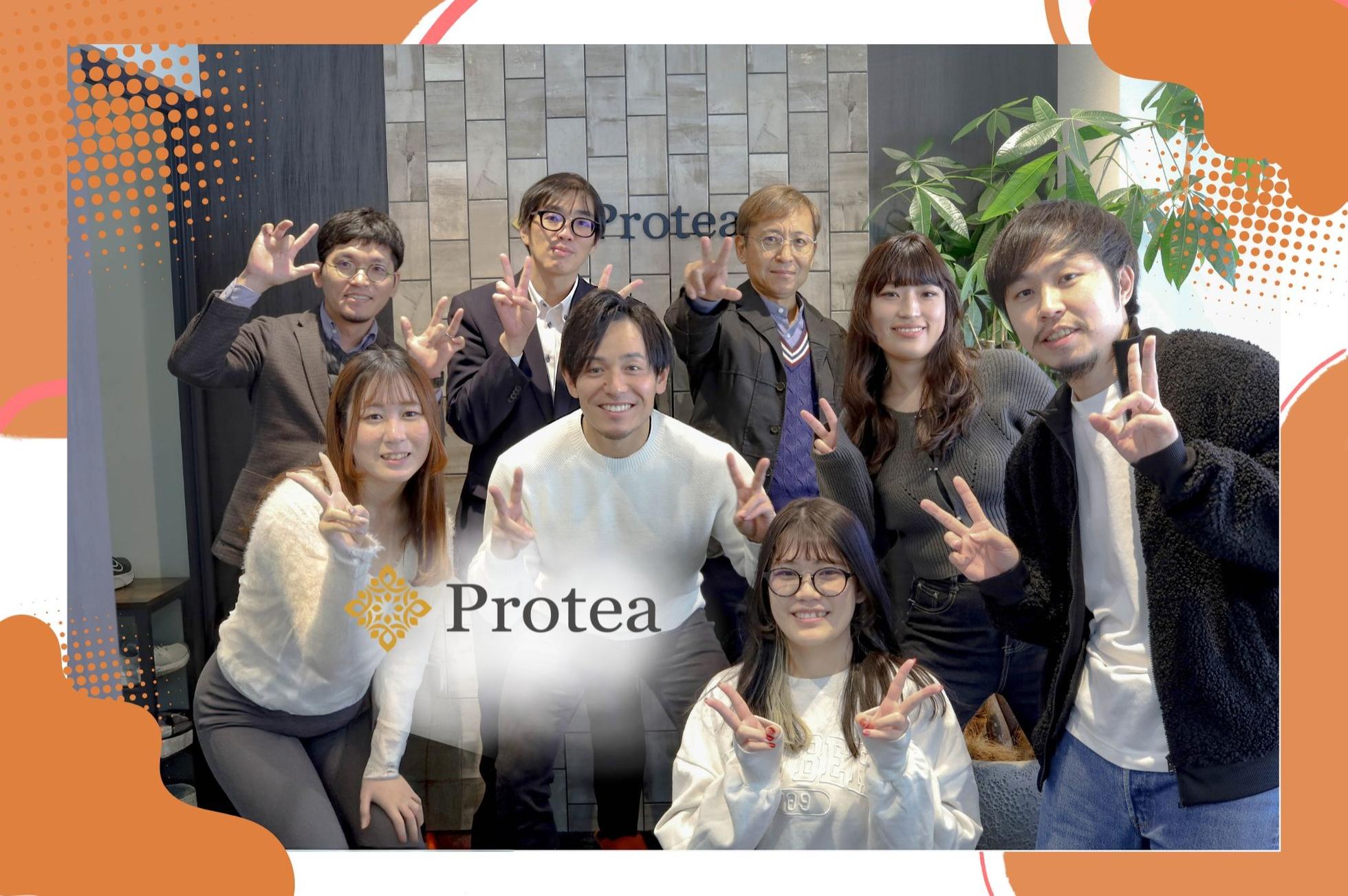 Proteaは現在10名という少数精鋭で、さまざまな事業を展開しています。 メンバー同士の距離も近いので、分からないことがあればすぐに聞くことができます。 また社内では常に新しい案件が動いており、スピード感をもって業務にあたっています。 ▍働きやすい環境づくり ●ウォーターサーバー完備  無料でお水・コーヒー等が飲めます! ●フィットネスジムが無料で利用(条件有)  オフィスから近いジムが無料で利用できます!  なかには仕事帰りにジムで運動してから帰宅するメンバーも! ●酸素ボックスに入り放題  社長が健康志向なこともあり、「メンバーには健康でいてほしい」という想いから、酸素ボックスを導入しました!  4人ほどが入れる大きな酸素ボックスなので、時には会議室に変身します!  会議に参加しながら健康的になれるかも! ●「オフィスでやさい」導入(https://www.officedeyasai.jp/)  メンバーの発案で、設置型の健康社食サービスを導入!  サラダやフルーツ・デザートなどいつものランチに一品追加できます! ●リゾートトラスト(会員制ホテル)の利用  全国にあるリゾートトラストの各施設を、会員料金で利用できます!  軽井沢や箱根などリゾート地の高級会員制ホテルを使ってリフレッシュも! ●社員旅行  年に1回ほど社員旅行にいくこともあります!  昨年は山中湖と富士急に行き、日々の疲れを癒してきました。  詳しい内容はストーリーをご覧ください! https://www.wantedly.com/companies/company_2501428/post_articles/918685