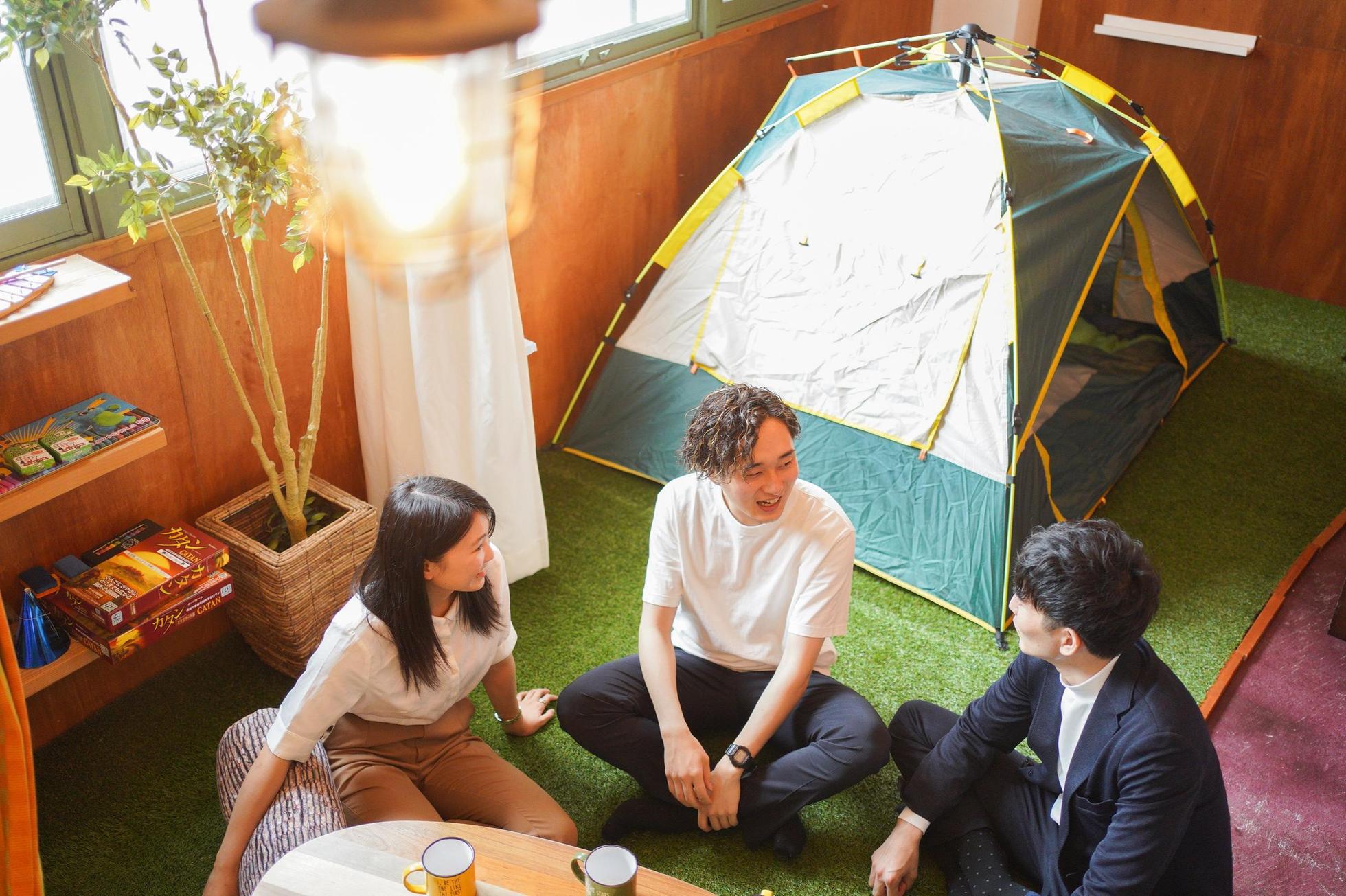 ~浅草おうちキャンプ~元々オフィスビルの倉庫スペースだったフロアを古リノベーション。「屋内キャンプ場」というコンセプトの元、都心で気軽にキャンプ感覚を味わえる施設として展開しております。