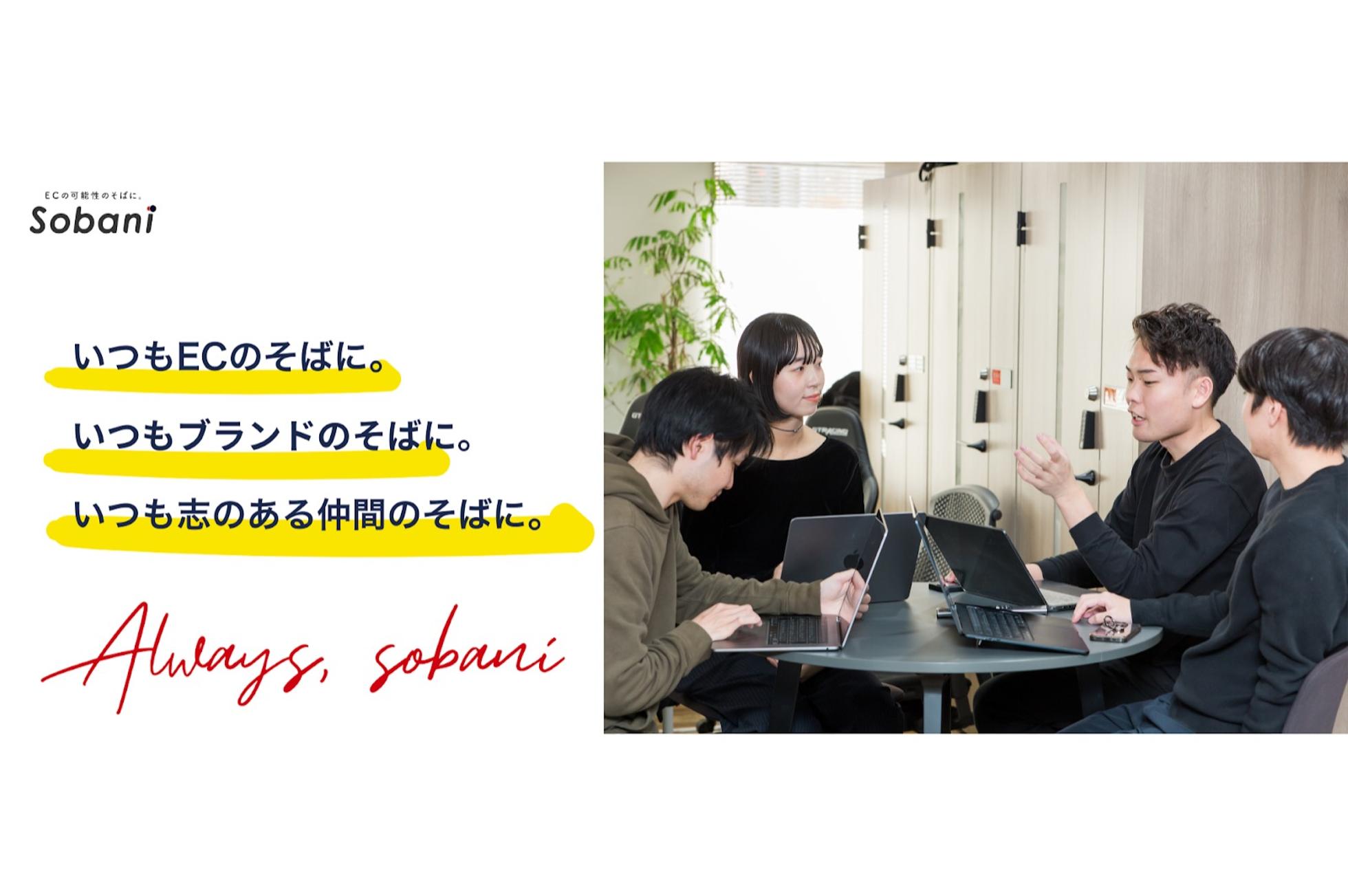 ◤MISSION◢ 『ECの可能性のそばに』 素晴らしい価値ある商品を作り手から「ECのチカラ」でより多くの消費者の元へ届けたい。 ブランドに対して“限界”を作らない。 私たちはECのプロフェッショナルとして、常にそのブランドの「可能性」を追求し続けます。 それと同時に、自分自身や仲間の成長にも“限界”を作りません。 メンバー全員が自身の成長に向けてコミットすることで、ブランドの成長に貢献することを目指します。 ◤VISION◢ 『Always Sobani』 ・いつもECのそばに。 ・いつもブランドのそばに。 ・いつも志のある仲間のそばに。 ECというソリューションの可能性を常に追求し、ブランドグロースの一番近くに居たい。 そばには最高の仲間と、それを実現したい。 ◤MISSION/VISIONを体現する◢ たとえば、創業70年を超える京都の老舗「ヤマサン」様での成果は、まさにMISSIONそのものを体現した事例です。 オンライン販売がほぼゼロだった当初から伴走し、いまでは売上の約7割をECが占めるまでに成長。 さらに、事業承継=世代交代というブランドの未来にまでつながる変化を生み出しました。 これを可能にしたのは、”そばに”がECというソリューションの可能性を常に追求し続けているからに他なりません。 また私たちは、自分自身や仲間の成長にも“限界”をつくらないというスタンスも大切にしています。 前述したように、20代でマネージャーやPMを担うメンバーが多数活躍しているのも、 「いつも志のある仲間のそばに。」というVISIONを、組織づくりの中でも体現しているからです。 一人ひとりが責任を持って考え、仲間とともに学び合い、挑戦し続ける。 そうした環境があるからこそ、メンバーがどんどん成長できる。 その成長が、やがてクライアントにとっての“ECのプロ”としての価値になっていく。 ”そばに”はMISSIONとVISIONをただのスローガンとして掲げているのではなく、 リアルに体現し続けています。 ◤参考動画/記事◢ ▼写真で見る”そばに” >>https://www.wantedly.com/portfolio/companies/sobani ▼”そばに”の実績について知りたいなら 1)”そばに”実績記事一覧 >>https://sobani.co.jp/works 2)株式会社ヤマサン様の事例記 >>https://sobani.co.jp/works/yamasan 3)【EC事業者必見】集客効果絶大⁉︎日本最大規模のフェア出展に完全密着【ジャパンゴルフフェア2025】 >>https://www.wantedly.com/portfolio/projects/73020 ▼”そばに”について知りたいなら 1)急成長中!ECベンチャー企業の総会に完全密着【株式会社そばに】 >>https://www.wantedly.com/portfolio/projects/73025