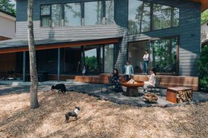 プレイガーデン大日向は軽井沢のなかでも陽当たりがよく、国有林近くにありながらお出かけするにも便利な立地です。大きな窓を用いることで庭と室内とが開放的に繋がるように設計されています。フラットな空間すべてが遊び場となり、お子様から愛犬まで自由に走りまわっていただけます。