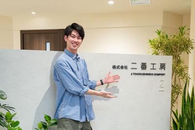 ◆クラフト力を活かした、リアリティのある映像制作 テクノロジーがどれだけ進歩しても、最後には『俯瞰的に捉える力』『決断力』『実行力』という人間の判断が必要です。二番工房ではこの3つをクラフト力と呼び、日々のパフォーマンスに取り入れています。 人の力とテクノロジーを融合することで、その場面に入り込んだかのようなリアリティある映像を生み出します。 ◆学生時代に戻ったような活気が、映像を生み出す 制作現場をひとことで表すと、”文化祭準備”という言葉がぴったり。気づけば社長をはじめメンバーが集まっていて、必ずどこかしらで会話が弾んでいます。 日本全国への地方ロケをはじめ、海外ロケの機会もあるので、まだ見ぬ世界を体験することもできるでしょう。 ▼二番工房のメンバーについて https://www.niban.co.jp/member/ ◆ワークライフバランス 映像業界は大変と言われがちですが、二番工房ではテレワークやフレックスタイム制を導入し、その日の業務に合わせて勤務時間が調整できるのでプライベートの時間も充実!また、年間125日(土・日・祝日)は基本的に休みとなります。有給・育児休暇はもちろん、スペシャル・ホリデー制度(長期オフタイム)は年に2回取得OK。取得時の報奨金もあります。 ◆会話がもっと楽しくなるオフィス 2023年9月から、銀座の新オフィスに移転しました。ワーキングスペースや会議室のほか、オープンラウンジも設置。フリーアドレスなので、気分で場所を変えて夢中になれるはず。会話をさらにはずませるオフィスです。 ◆クオリティUPのきっかけを補助 基本的な福利厚生はもちろん、映画や美術館の鑑賞費補助をご用意。映像制作会社ならではのユニークな制度です。