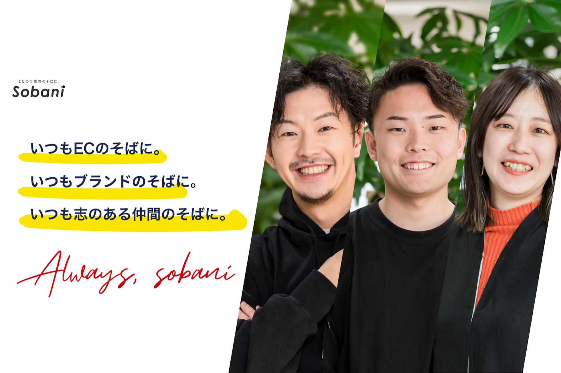 ◤MISSION◢ 『ECの可能性のそばに』 素晴らしい価値ある商品を作り手から「ECのチカラ」でより多くの消費者の元へ届けたい。 ブランドに対して“限界”を作らない。 私たちはECのプロフェッショナルとして、常にそのブランドの「可能性」を追求し続けます。 それと同時に、自分自身や仲間の成長にも“限界”を作りません。 メンバー全員が自身の成長に向けてコミットすることで、ブランドの成長に貢献することを目指します。 ◤VISION◢ 『Always Sobani』 ・いつもECのそばに。 ・いつもブランドのそばに。 ・いつも志のある仲間のそばに。 ECというソリューションの可能性を常に追求し、ブランドグロースの一番近くに居たい。 そばには最高の仲間と、それを実現したい。 ◤MISSION/VISIONを体現する◢ たとえば、創業70年を超える京都の老舗「ヤマサン」様での成果は、まさにMISSIONそのものを体現した事例です。 オンライン販売がほぼゼロだった当初から伴走し、いまでは売上の約7割をECが占めるまでに成長。 さらに、事業承継=世代交代というブランドの未来にまでつながる変化を生み出しました。 これを可能にしたのは、”そばに”がECというソリューションの可能性を常に追求し続けているからに他なりません。 また私たちは、自分自身や仲間の成長にも“限界”をつくらないというスタンスも大切にしています。 前述したように、20代でマネージャーやPMを担うメンバーが多数活躍しているのも、 「いつも志のある仲間のそばに。」というVISIONを、組織づくりの中でも体現しているからです。 一人ひとりが責任を持って考え、仲間とともに学び合い、挑戦し続ける。 そうした環境があるからこそ、メンバーがどんどん成長できる。 その成長が、やがてクライアントにとっての“ECのプロ”としての価値になっていく。 ”そばに”はMISSIONとVISIONをただのスローガンとして掲げているのではなく、 リアルに体現し続けています。 ◤参考動画/記事◢ ▼写真で見る”そばに” >>https://www.wantedly.com/portfolio/companies/sobani ▼”そばに”の実績について知りたいなら 1)”そばに”実績記事一覧 >>https://sobani.co.jp/works 2)株式会社ヤマサン様の事例記 >>https://sobani.co.jp/works/yamasan 3)【EC事業者必見】集客効果絶大⁉︎日本最大規模のフェア出展に完全密着【ジャパンゴルフフェア2025】 >>https://www.wantedly.com/portfolio/projects/73020 ▼”そばに”について知りたいなら 1)急成長中!ECベンチャー企業の総会に完全密着【株式会社そばに】 >>https://www.wantedly.com/portfolio/projects/73025