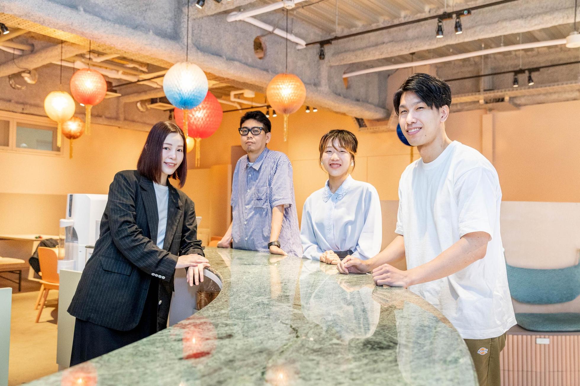 2022年2月に移転した新オフィス。占い要素が詰まったこだわりの空間になっています。1Fはカフェのような作りになっており、研修や懇親会などの集まりでも使用します。