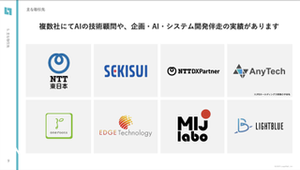 大手からベンチャーまで、様々なお客様のAIの課題解決をしています(※弊社資料抜粋)